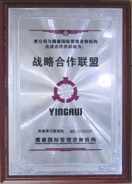 证书编号: NO.0150233 证书名称: 战略合作联盟 发证机构: 鹰睿国际管理咨询机构 生效日期: 2019年06月13日 截止日期: 2022年06月13日 认证简介: