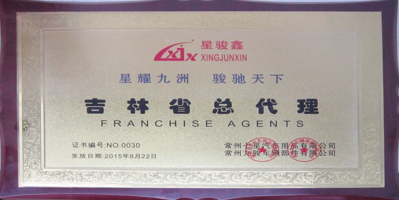 证书编号: NO.0030 证书名称: 吉林省总代理 发证机构: 常州七星汽车用品有限公司 生效日期: 2019年06月13日 截止日期: 2022年06月13日 认证简介: